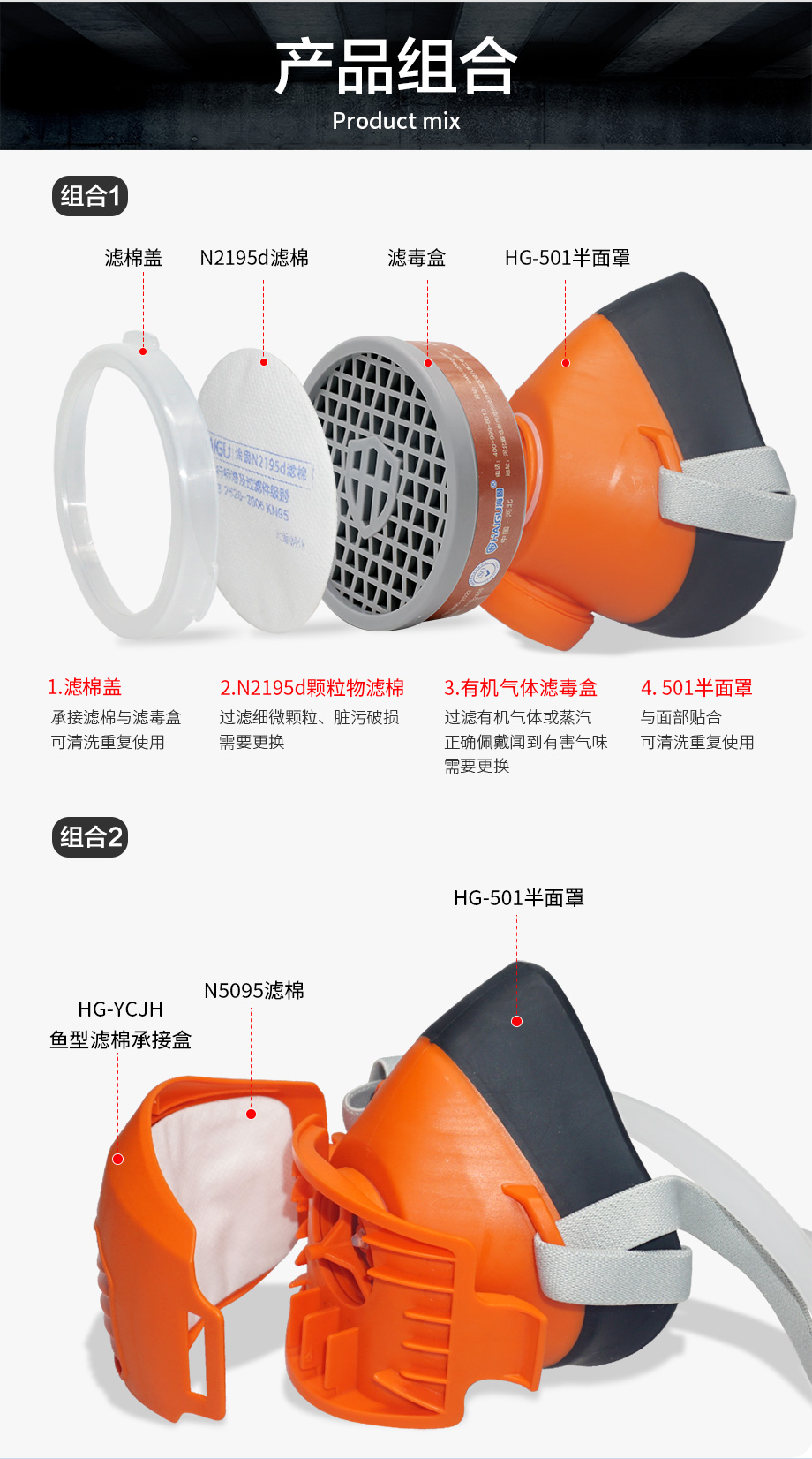 500半面罩防毒面具套裝