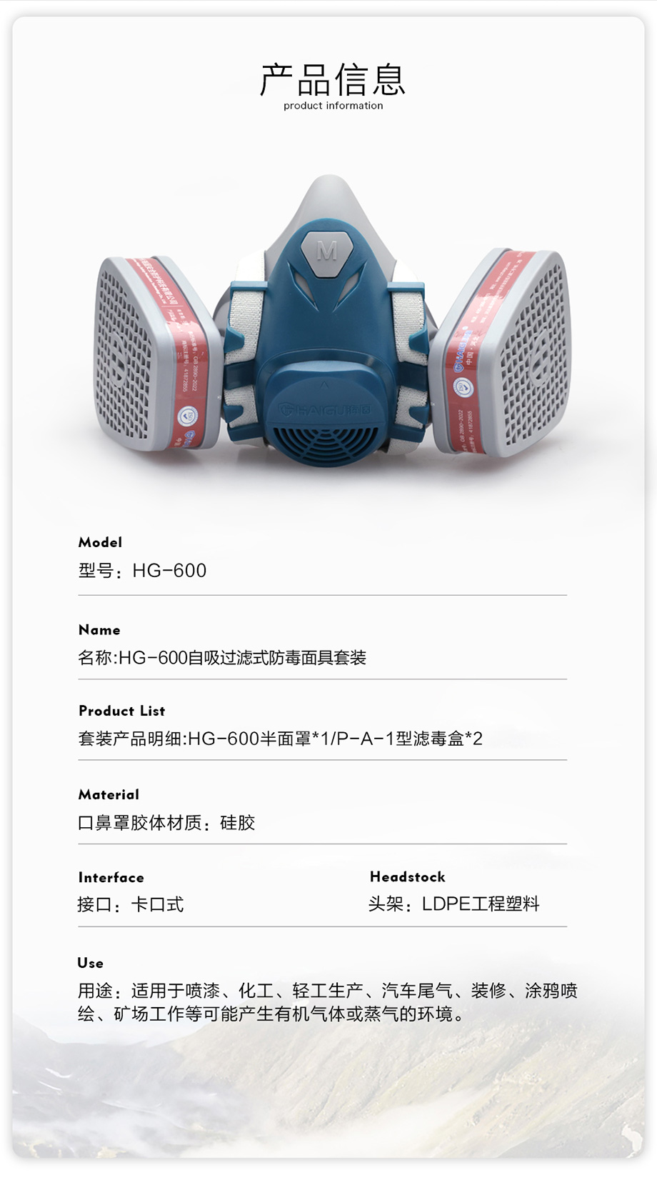 海固600半面罩+P-A-1濾毒盒 綜合防護(hù)有機(jī)氣體或蒸氣套裝