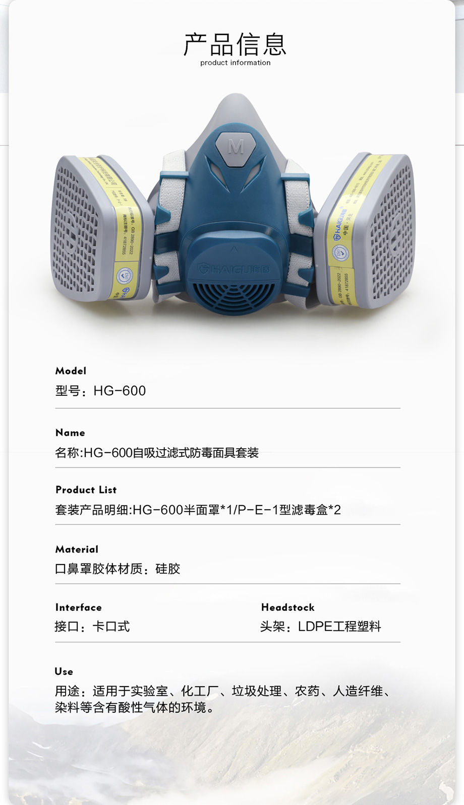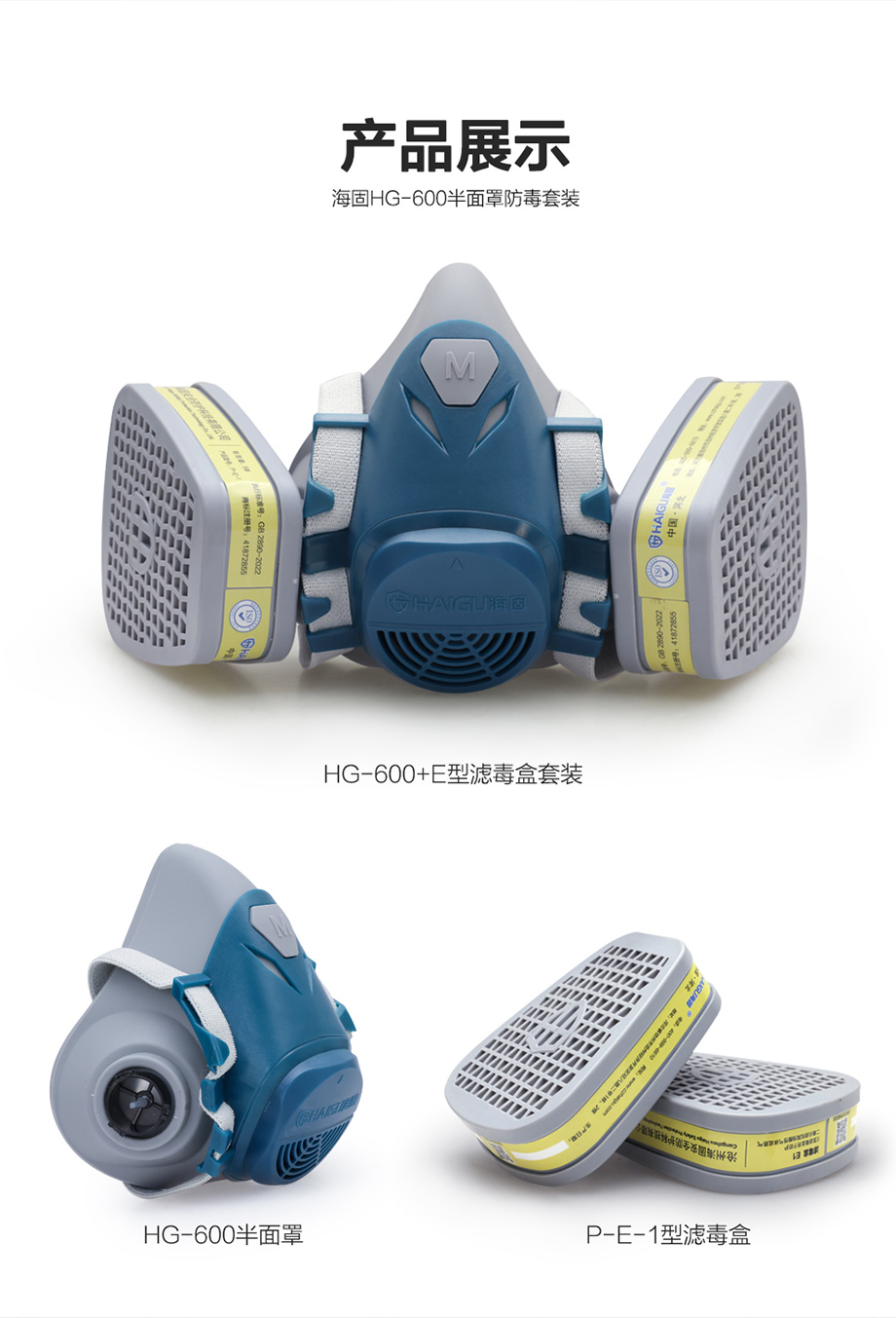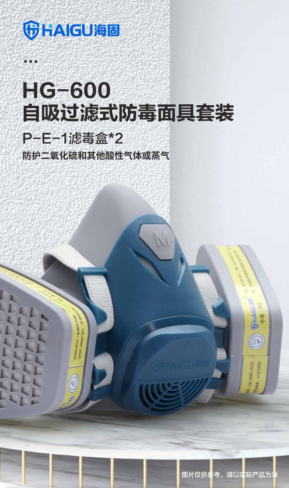 海固600半面罩+P-E-1濾毒盒 防護(hù)二氧化硫和其他酸性氣體或蒸汽套裝