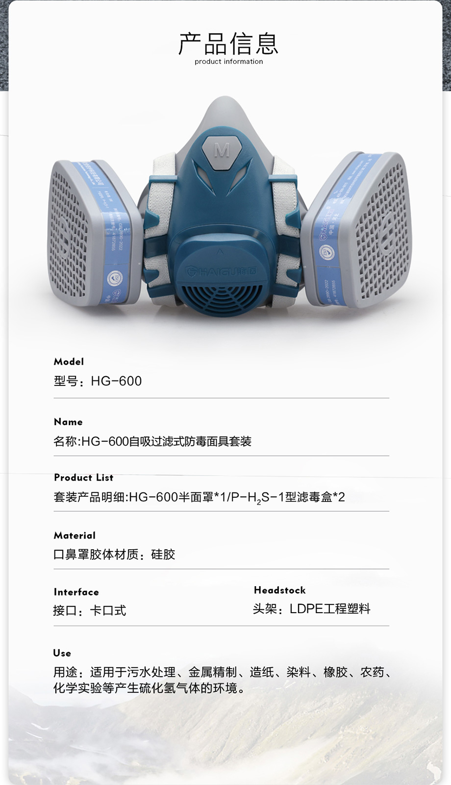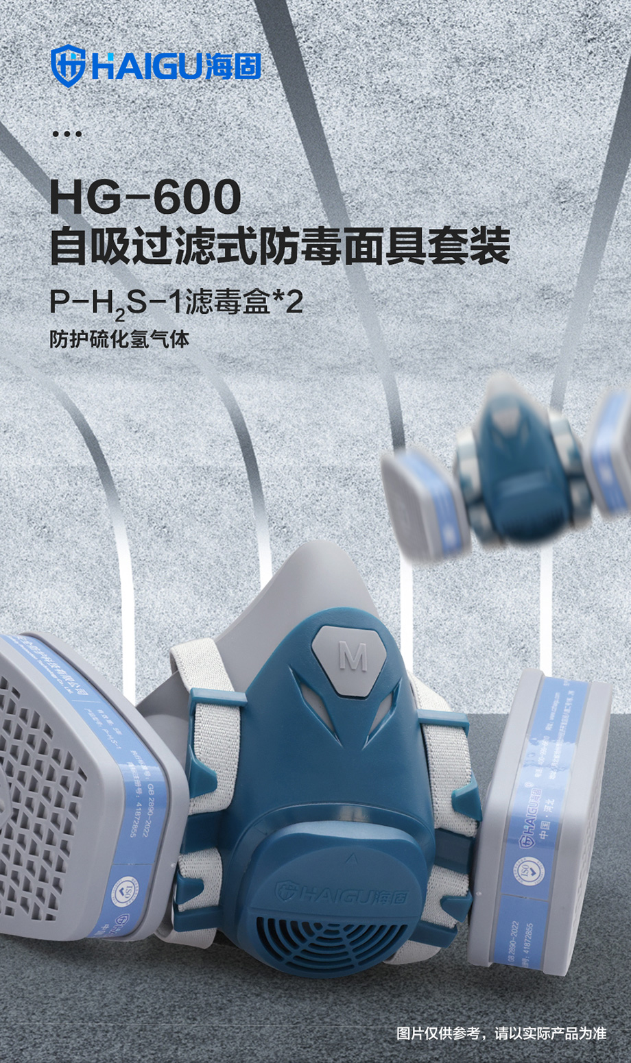海固600半面罩+P-H2S-1濾毒盒 防護硫化氫氣體套裝