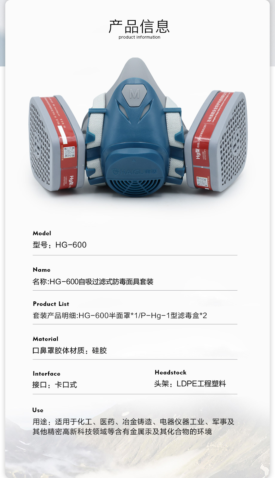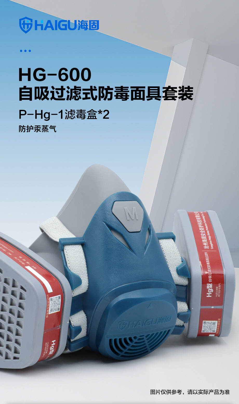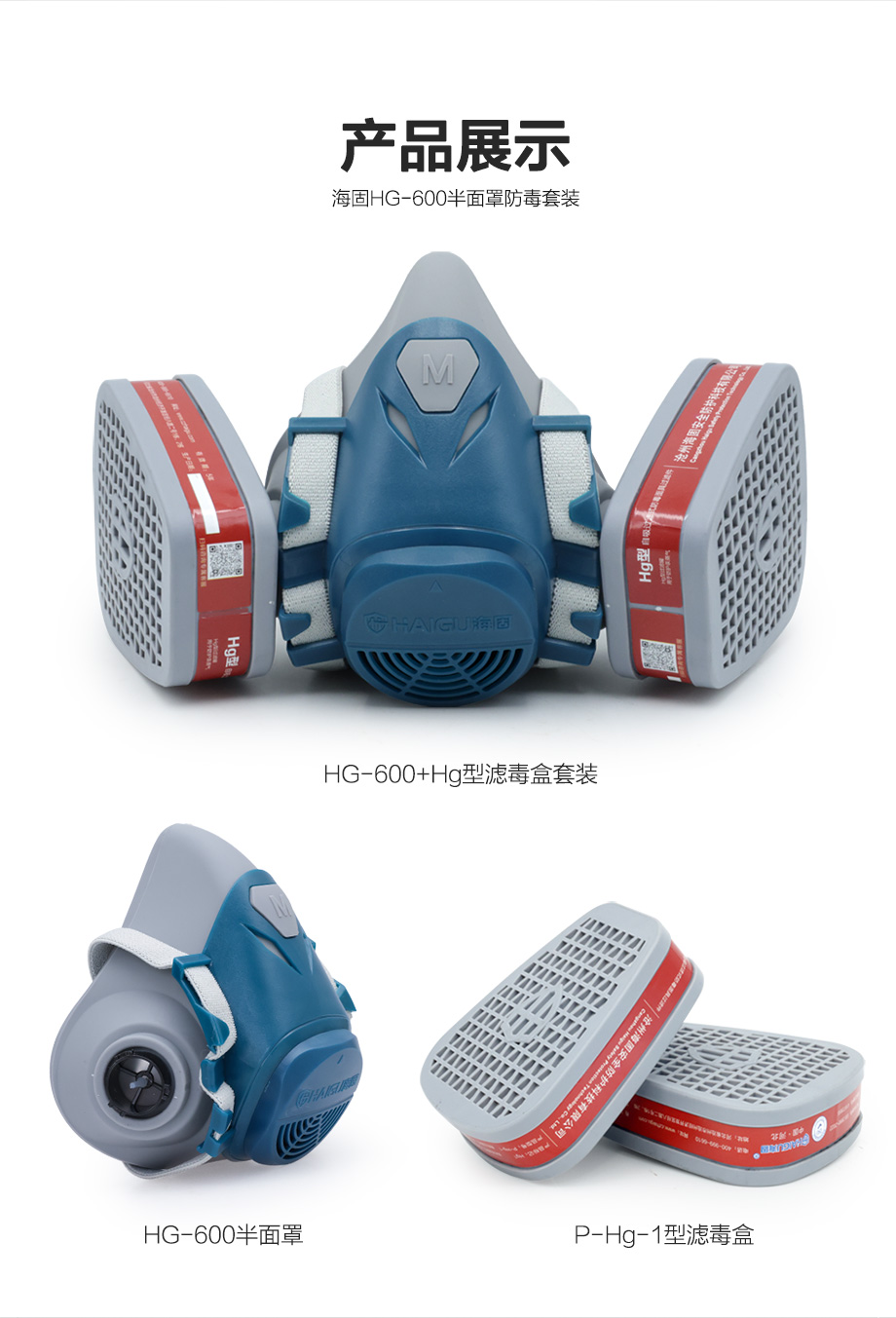 海固600半面罩+P-Hg-1濾毒盒 防護(hù)汞蒸汽套裝