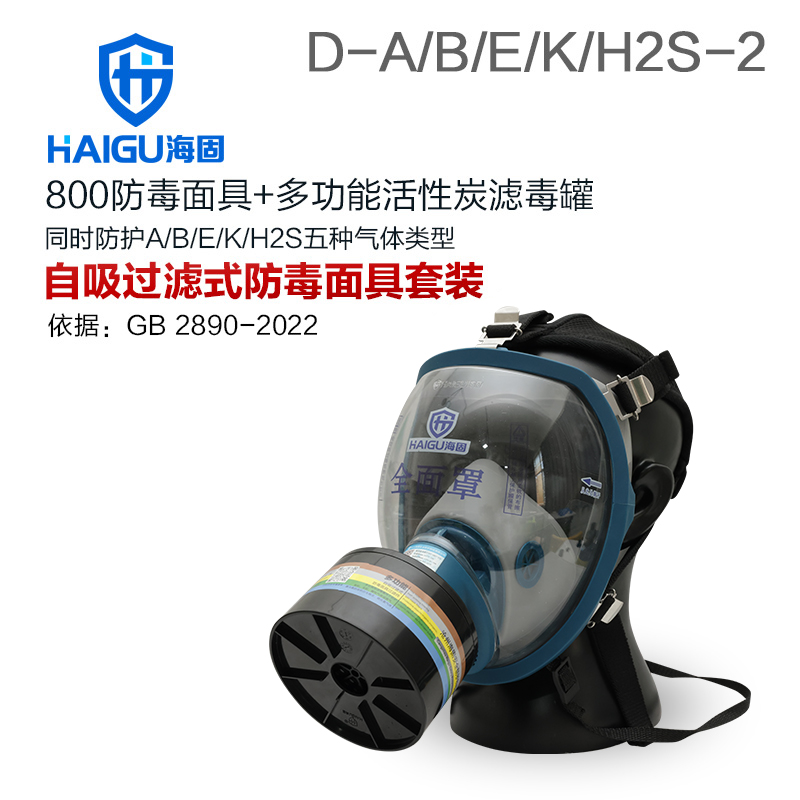 海固800全面罩+D-A/B/E/K/H2S-2濾毒罐 綜合防毒