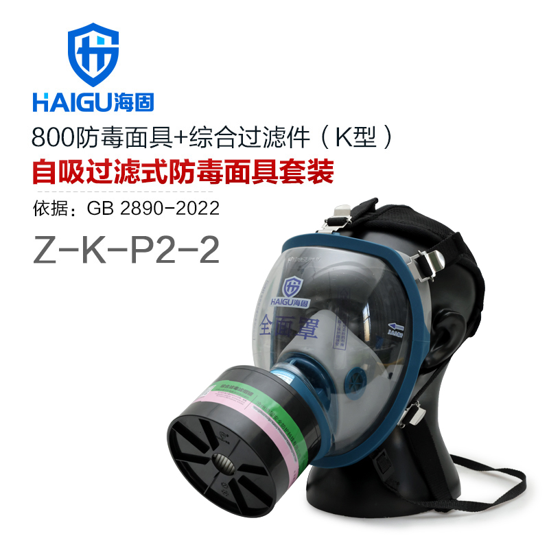 海固800全面罩+P-K-2濾毒罐 氨氣防毒面具套