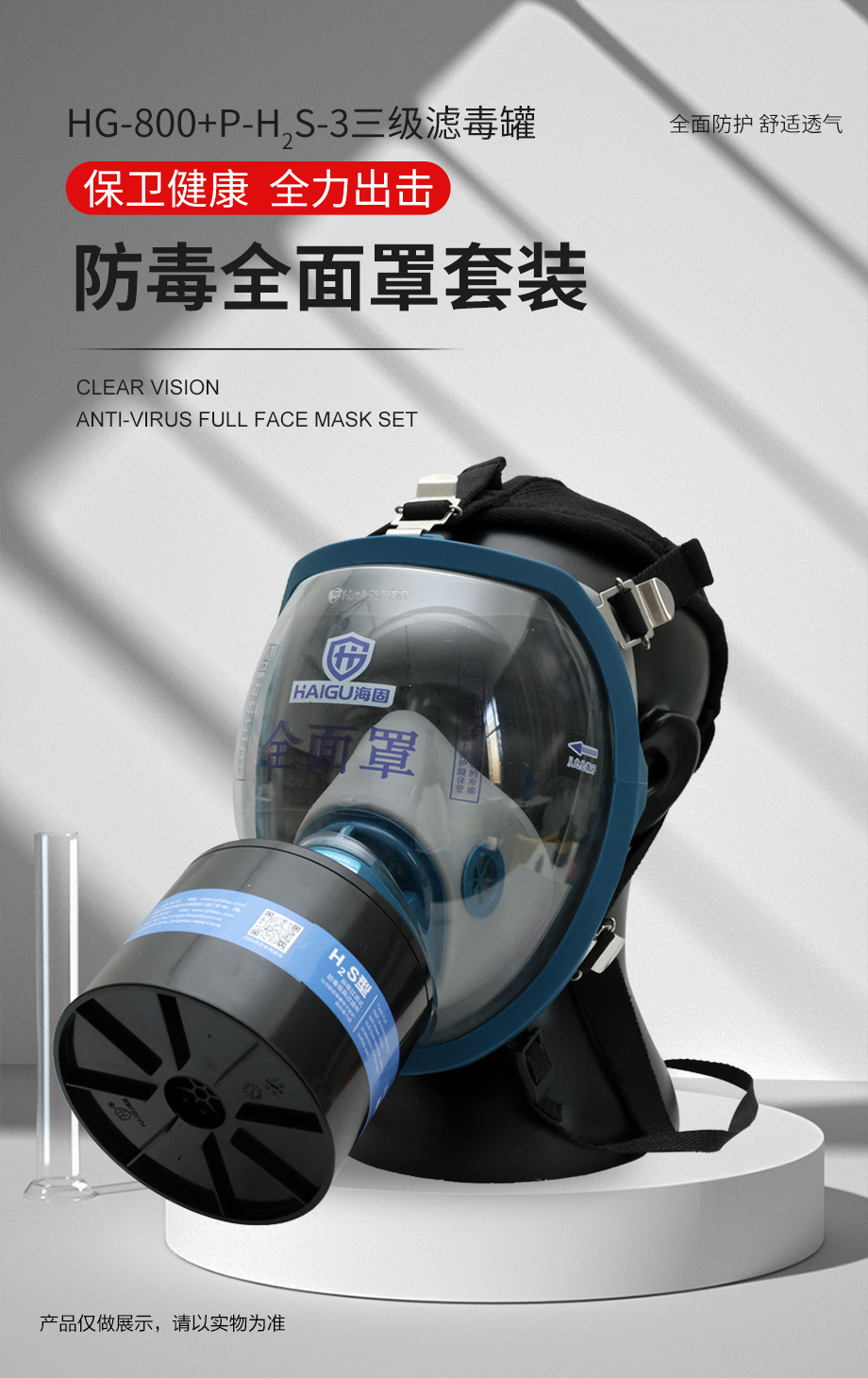 海固800全面罩+P-H2S-3濾毒罐 硫化氫氣體防護(hù)套裝