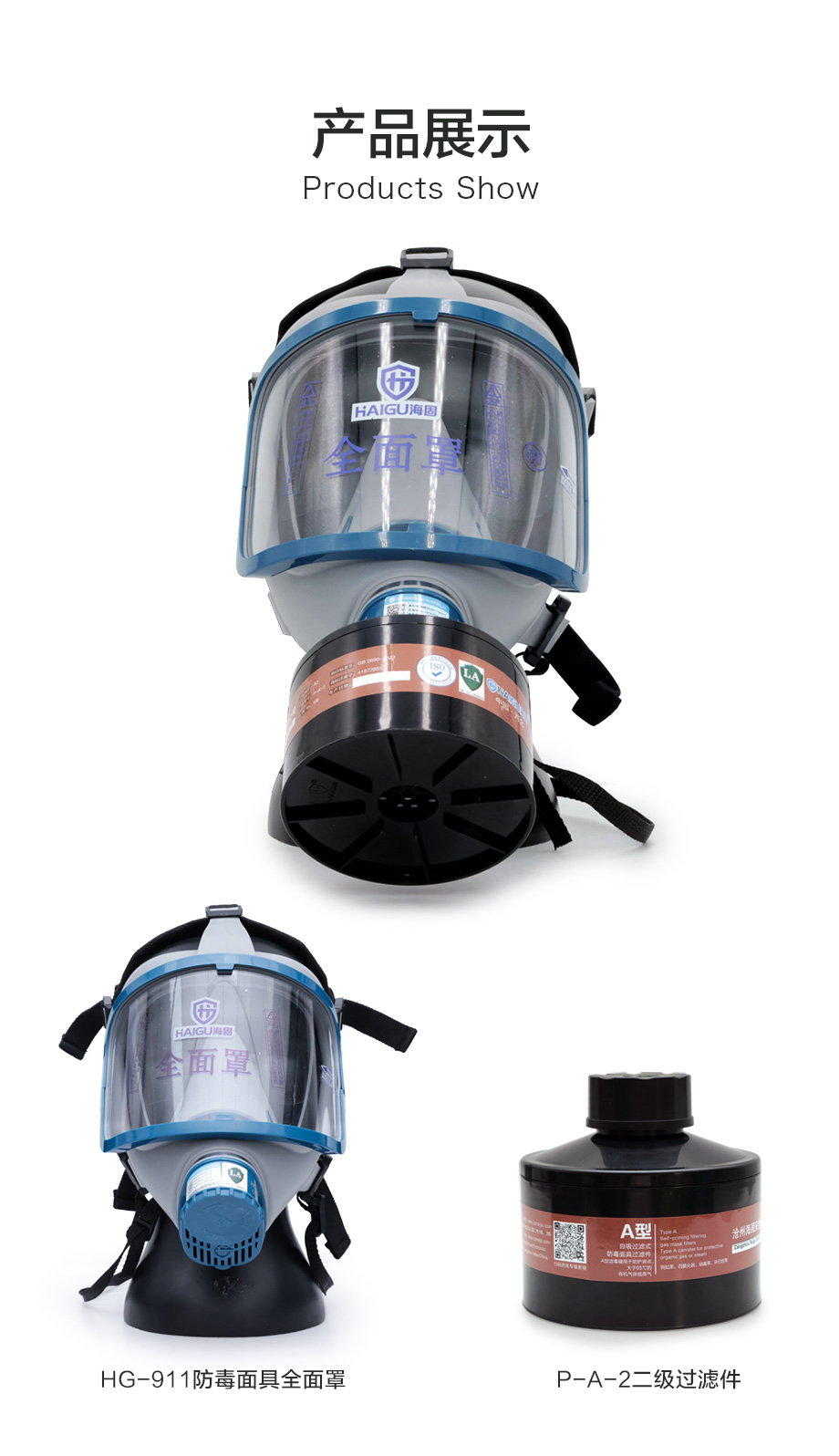 海固911全面罩+P-A-2濾毒罐 有機(jī)氣體防護(hù)套裝