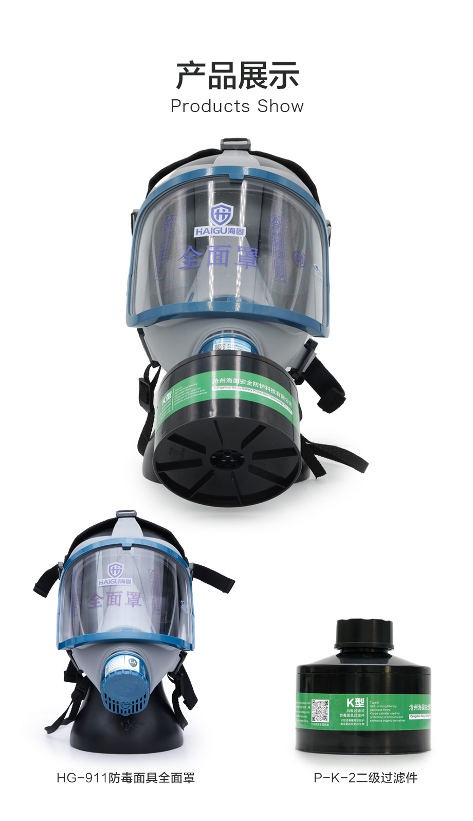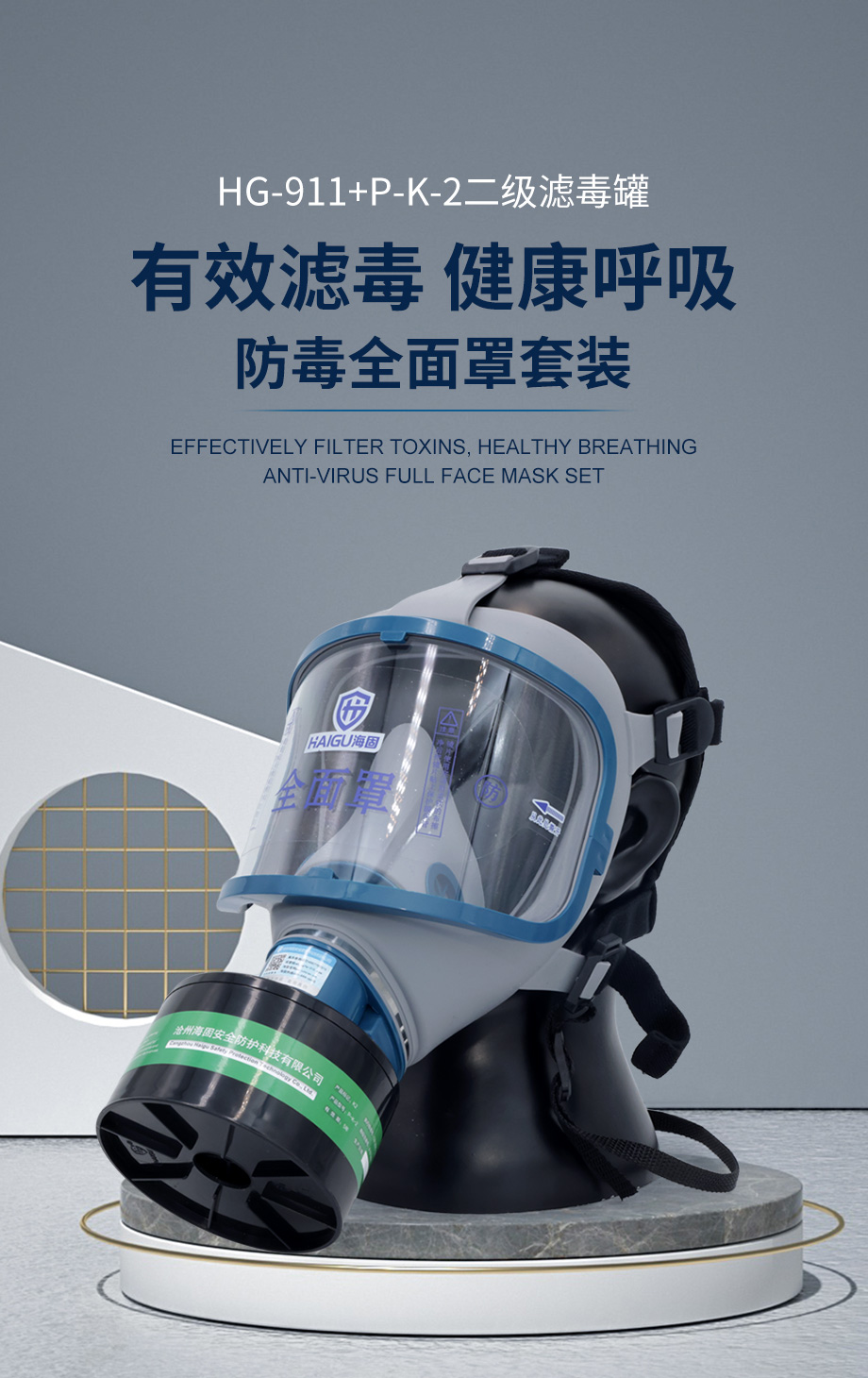 海固911全面罩+P-K-2濾毒罐 氨氣防毒面具套裝