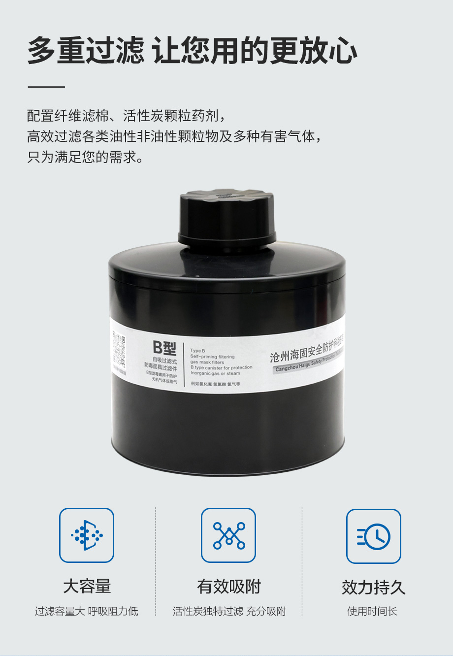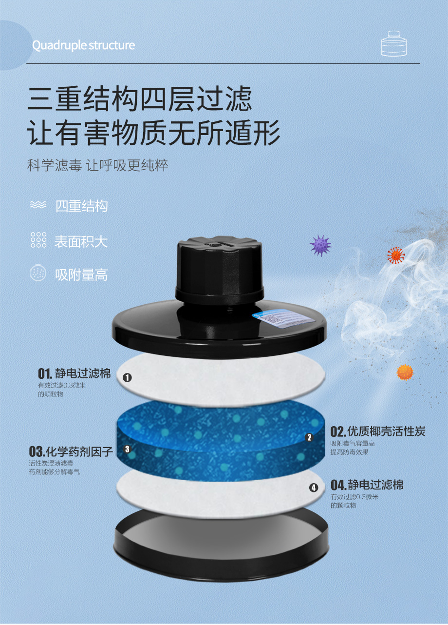 產(chǎn)品規(guī)格:寶藍灰硅膠/ABS濾毒罐