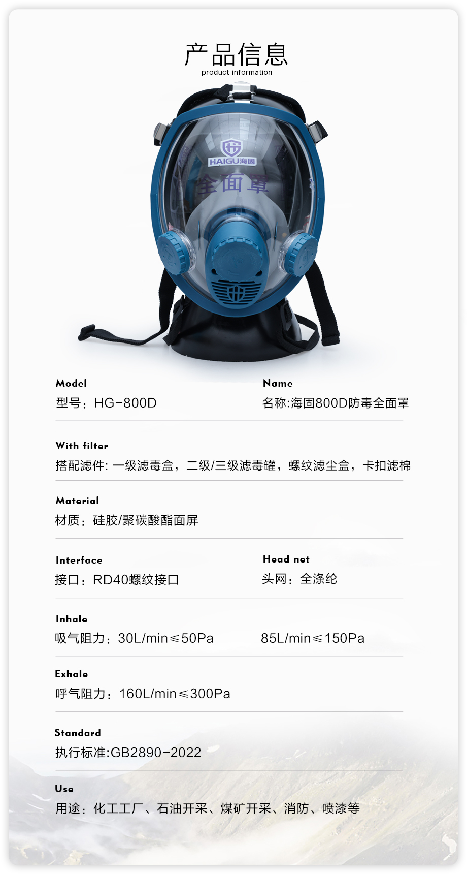 海固HG-800D全面罩 全新卡扣式一體裝配 安全實(shí)用