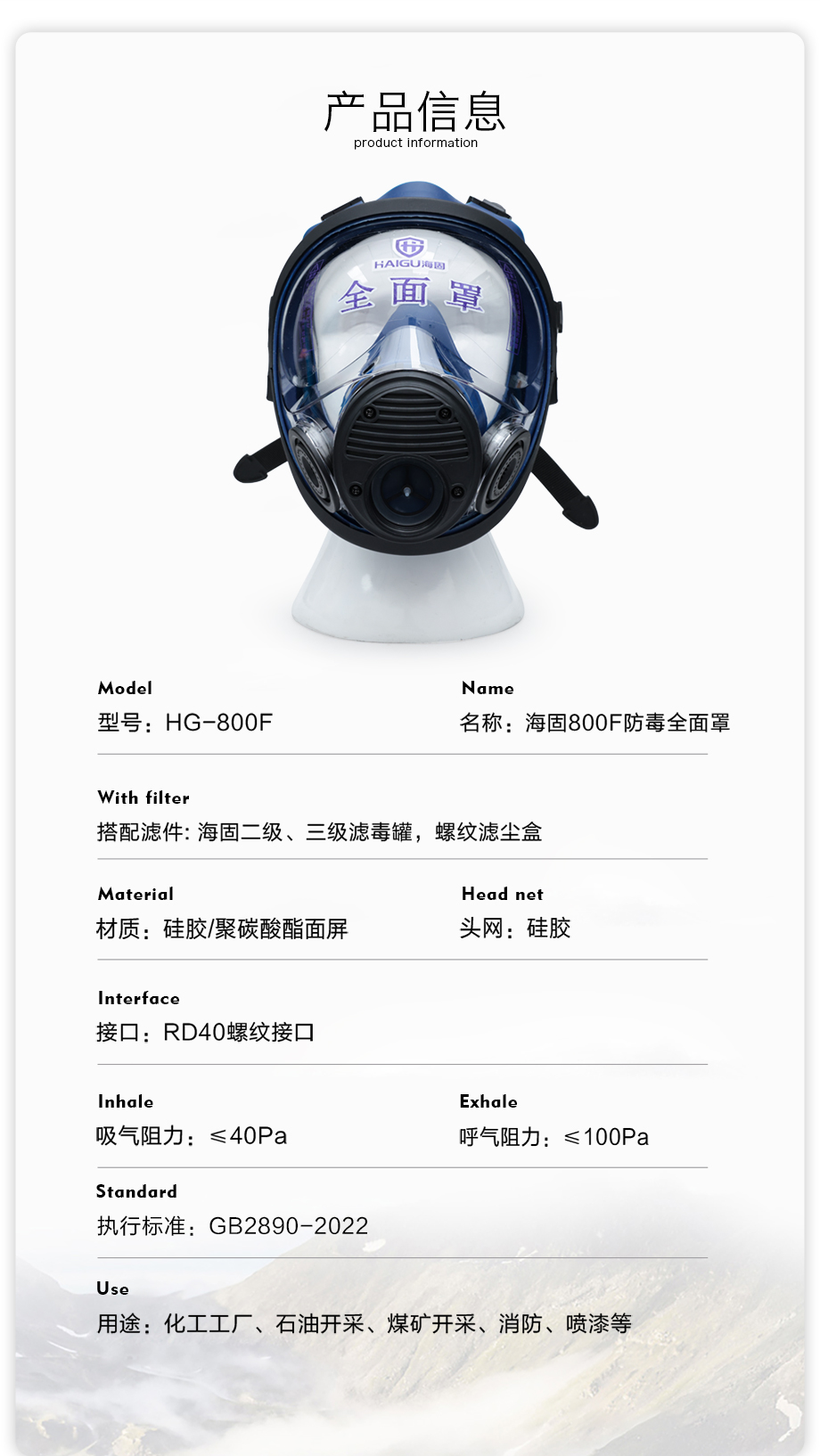 海固HG-800F防毒全面罩