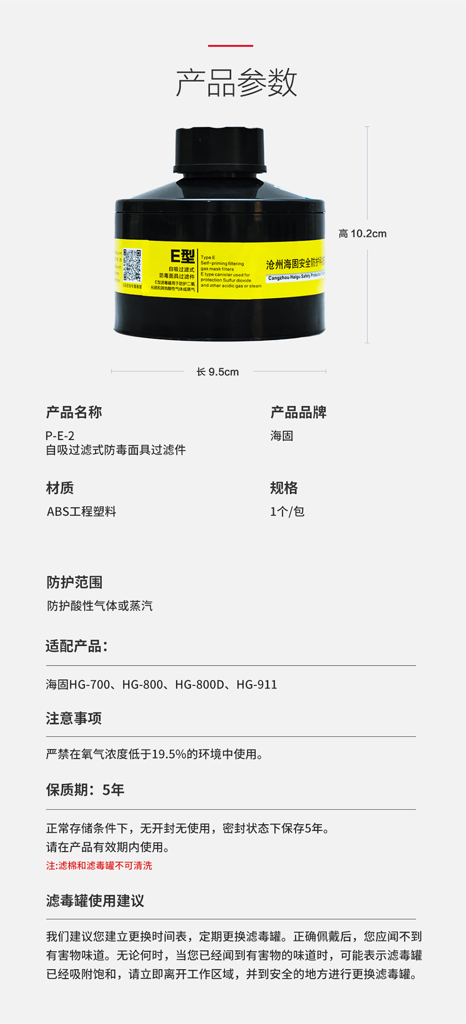 海固P-E-2濾毒罐 防護二氧化硫和其他酸性氣體或蒸氣
