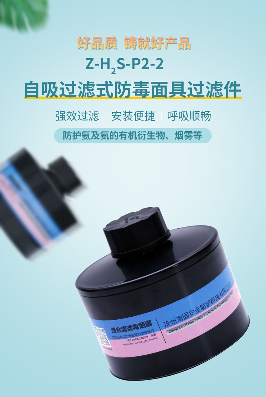 海固Z-H2S-P2-2/P3-2綜合濾毒濾煙罐 硫化氫及煙霧防護