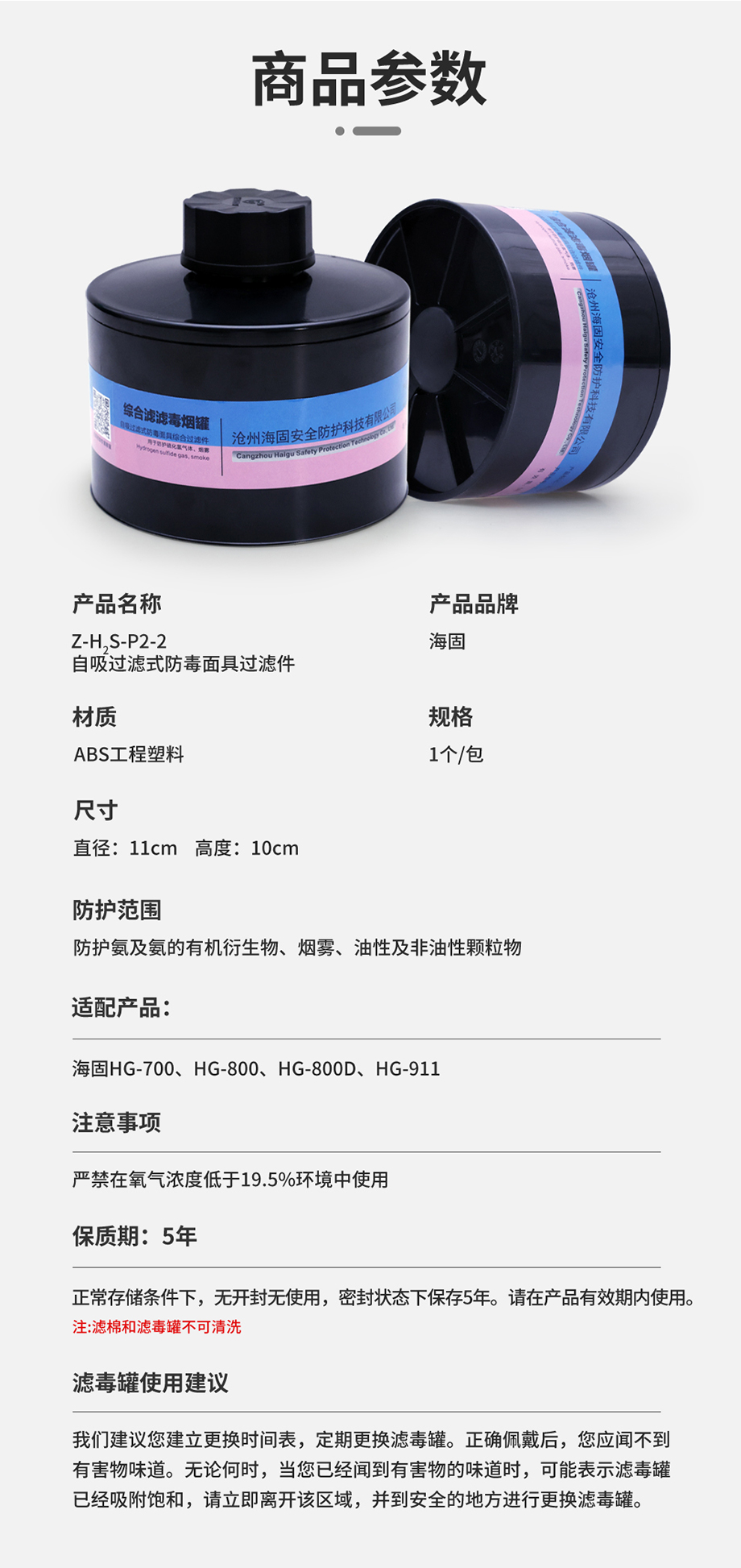 產(chǎn)品規(guī)格:綜合濾毒濾煙罐