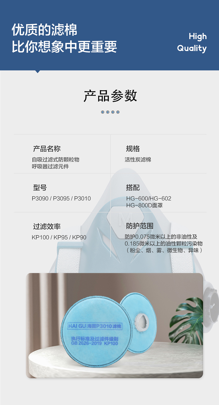 海固活性炭濾棉 3系列KP卡扣濾棉 KP100/KP95/KP90油性及非油性顆粒物濾棉