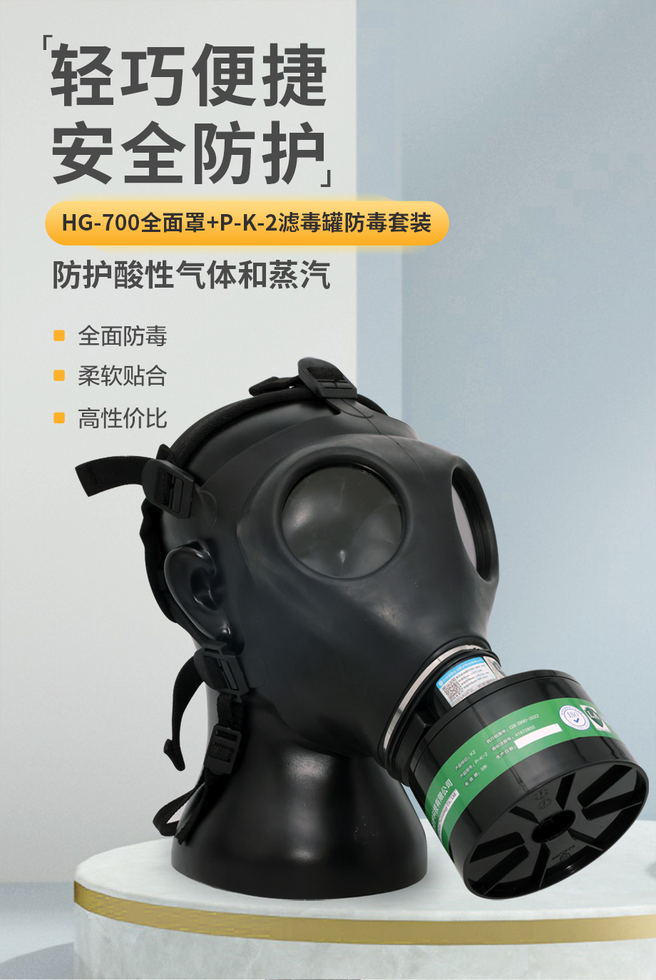 海固700全面罩+P-K-2濾毒罐 氨氣防護(hù)套裝