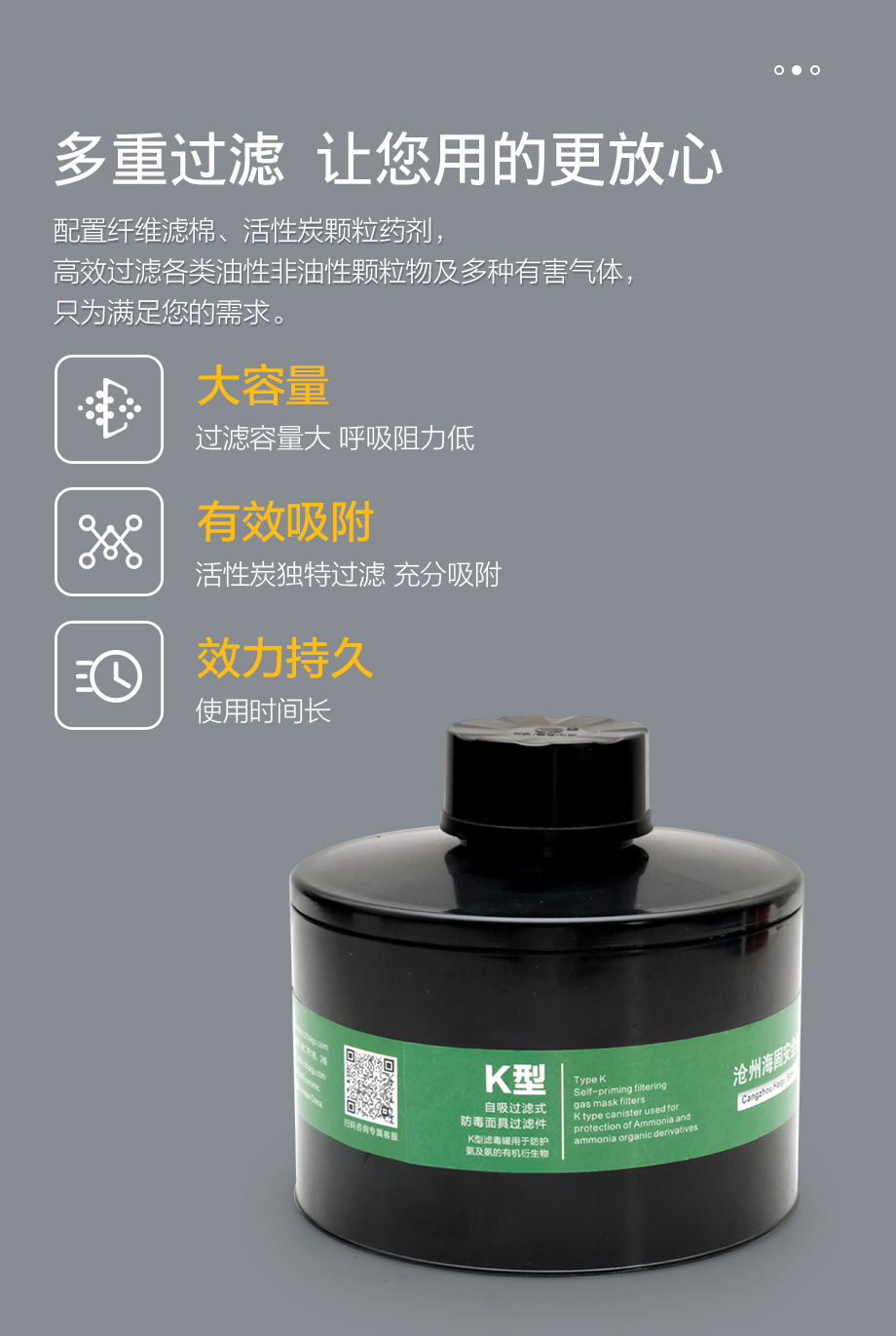 三級(jí)過濾件濾毒罐