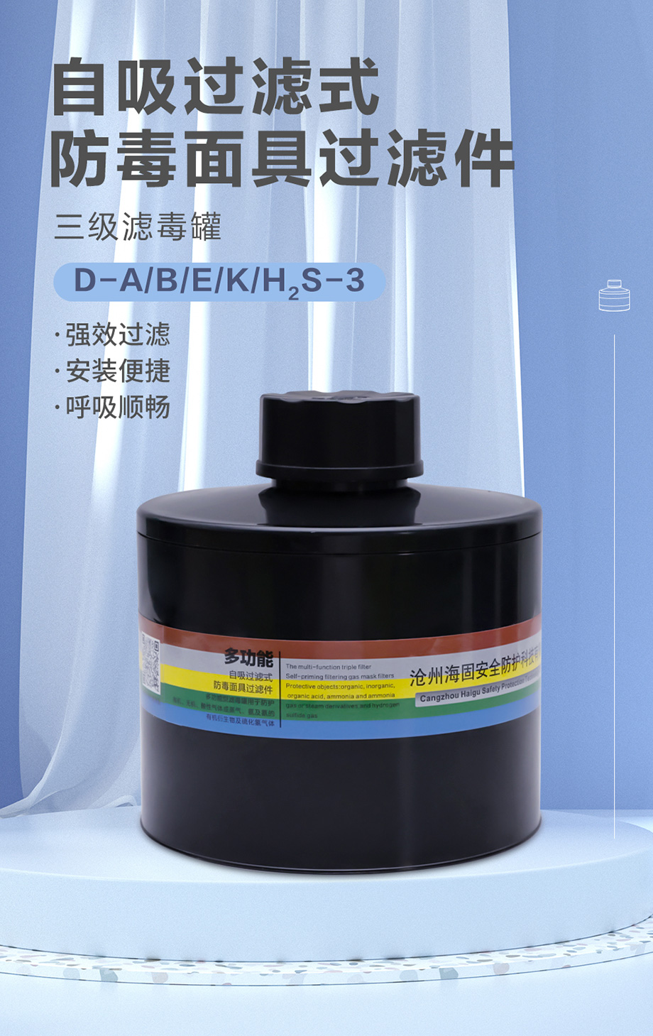 海固D-A/B/E/K/H2S-3濾毒罐 綜合多氣體防護(hù)三級(jí)濾毒罐