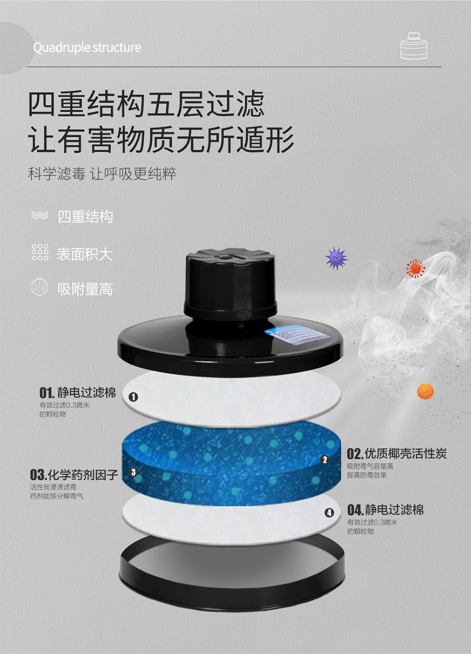 防護(hù)范圍:主要防護(hù)有機(jī)、無(wú)機(jī)、酸性氣體或蒸氣、氨及氨的有機(jī)衍生物及硫化氫氣體