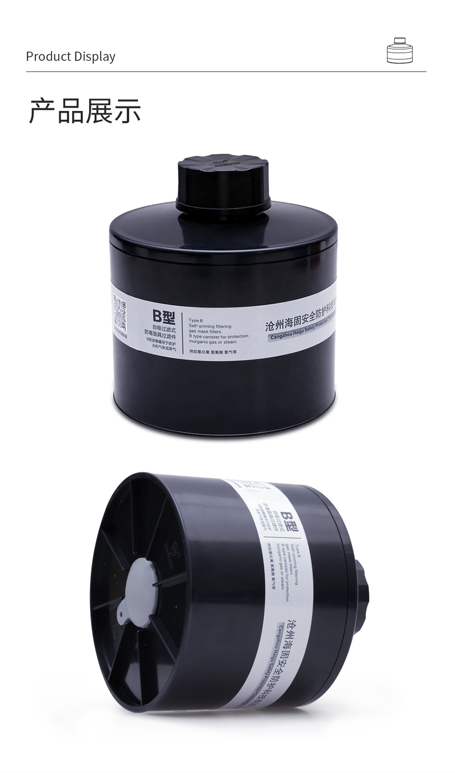 海固P-B-3濾毒罐 防護氯化氫、氫氰酸、氯氣等無機氣體三級濾毒罐