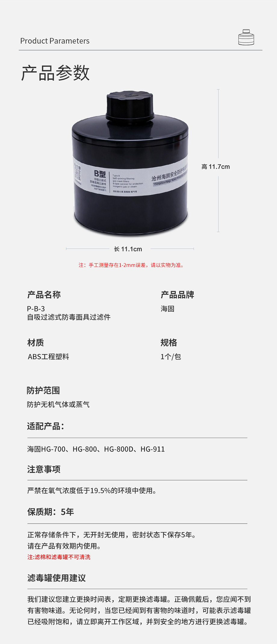 產品規(guī)格:ABS濾毒罐