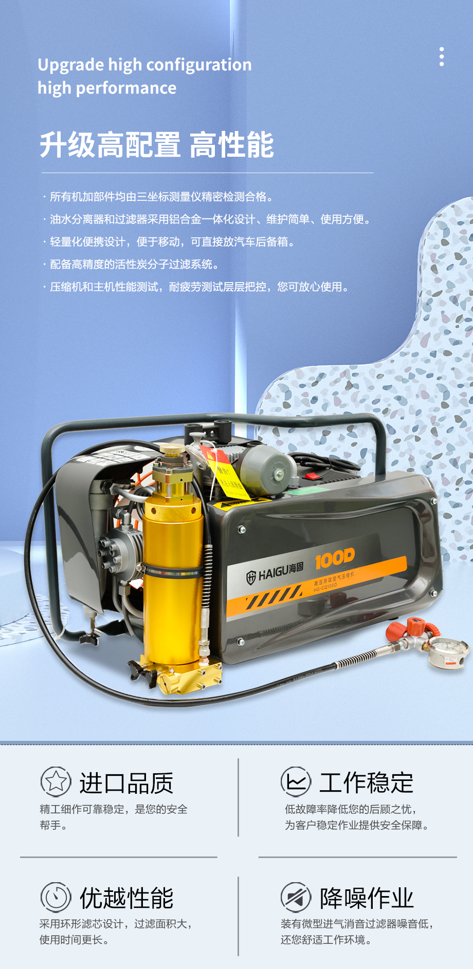 海固HG-CQ100D高壓呼吸空氣壓縮機(jī) 正壓式空氣呼吸器充氣泵