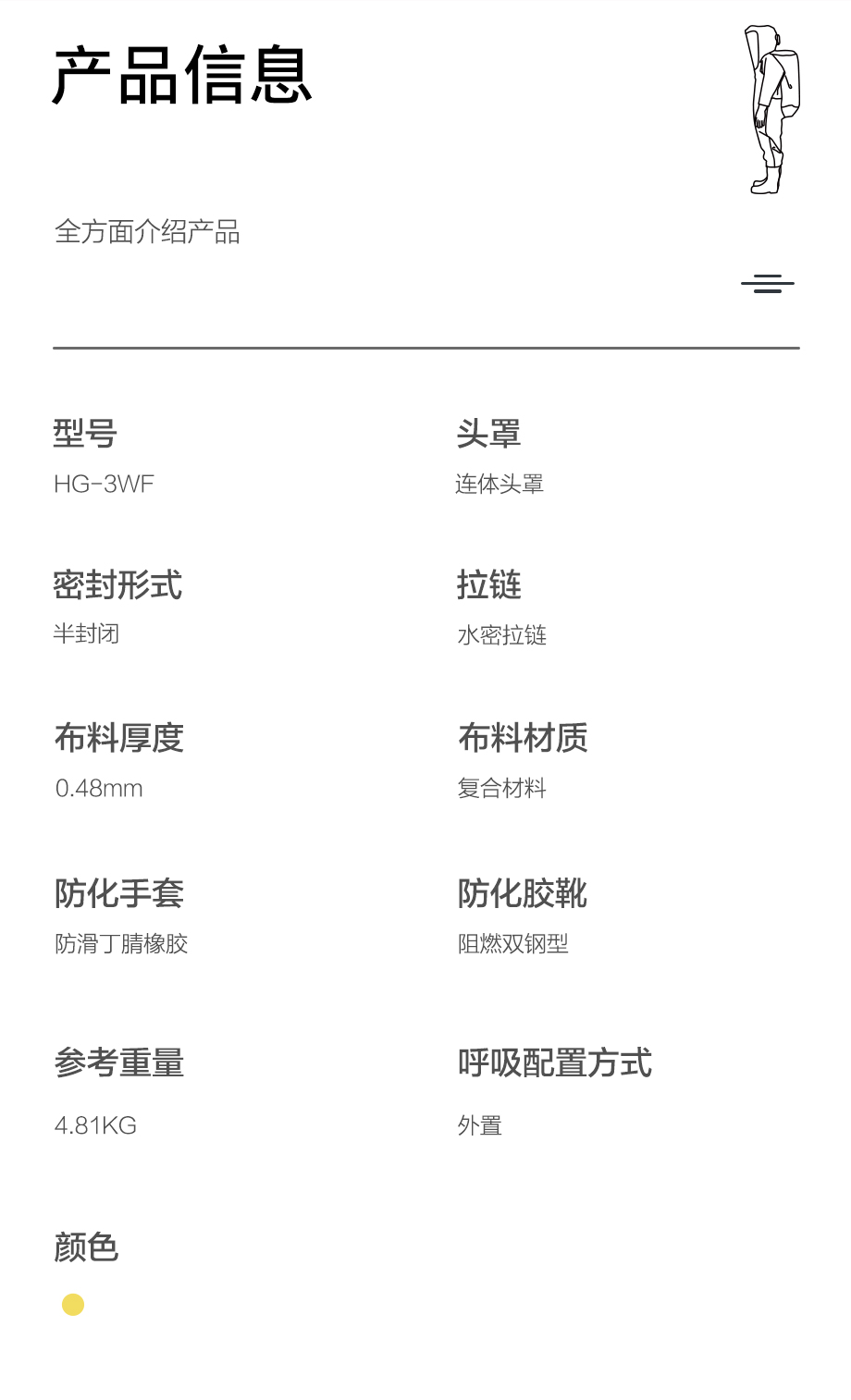 海固HG-3WF噴射液密型化學(xué)防護(hù)服 外置半封閉型(不含防毒面具)