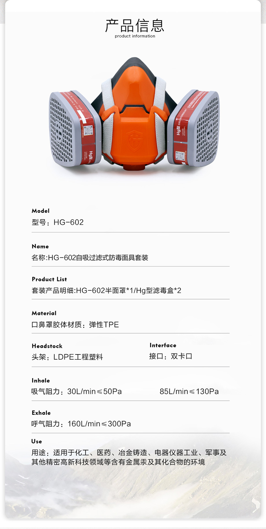 海固602半面罩+P-Hg-1濾毒盒 汞蒸氣防護套裝