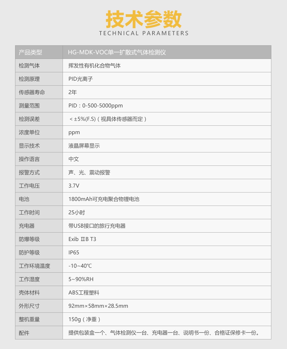 產(chǎn)品規(guī)格:VOC
