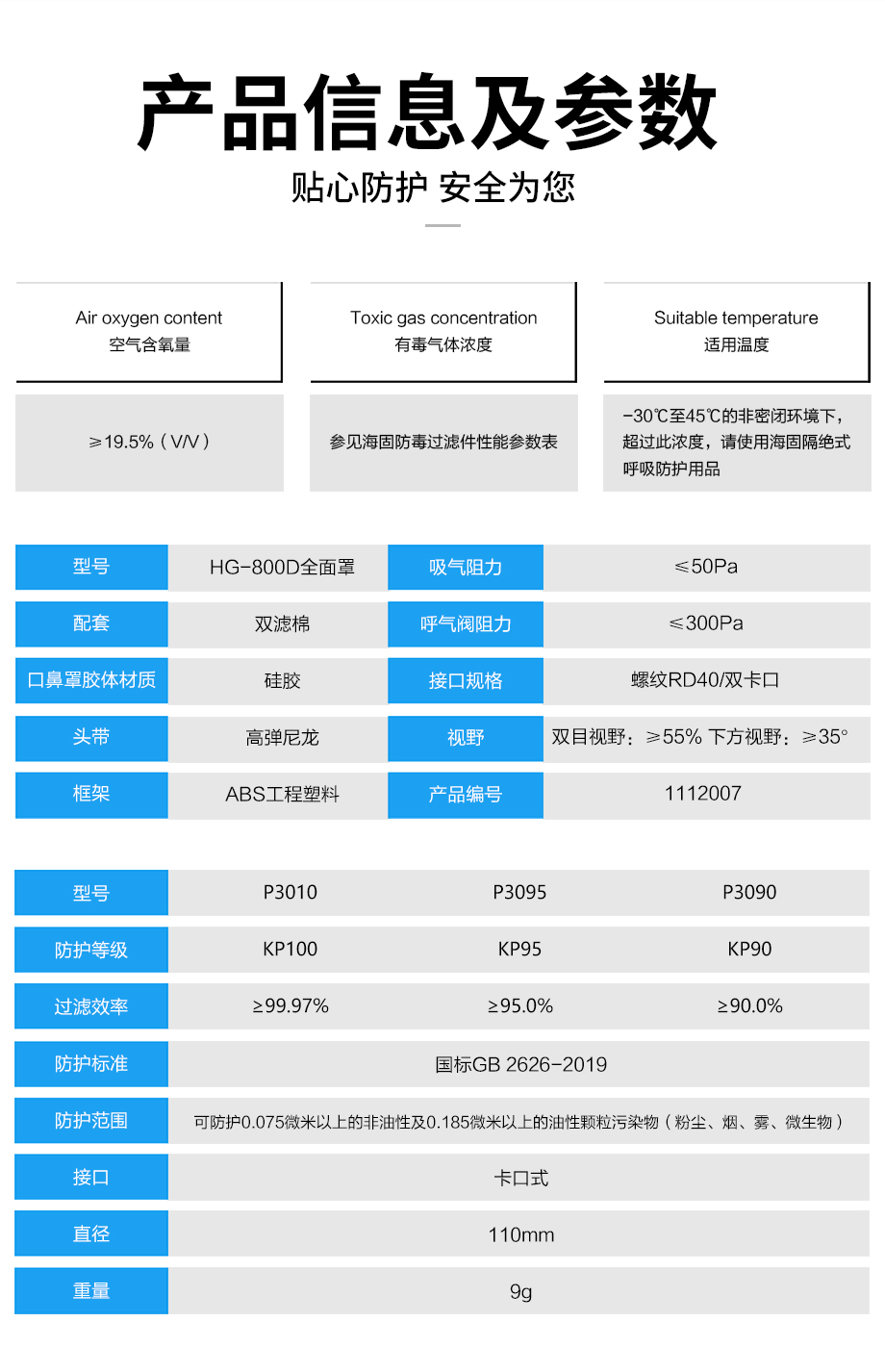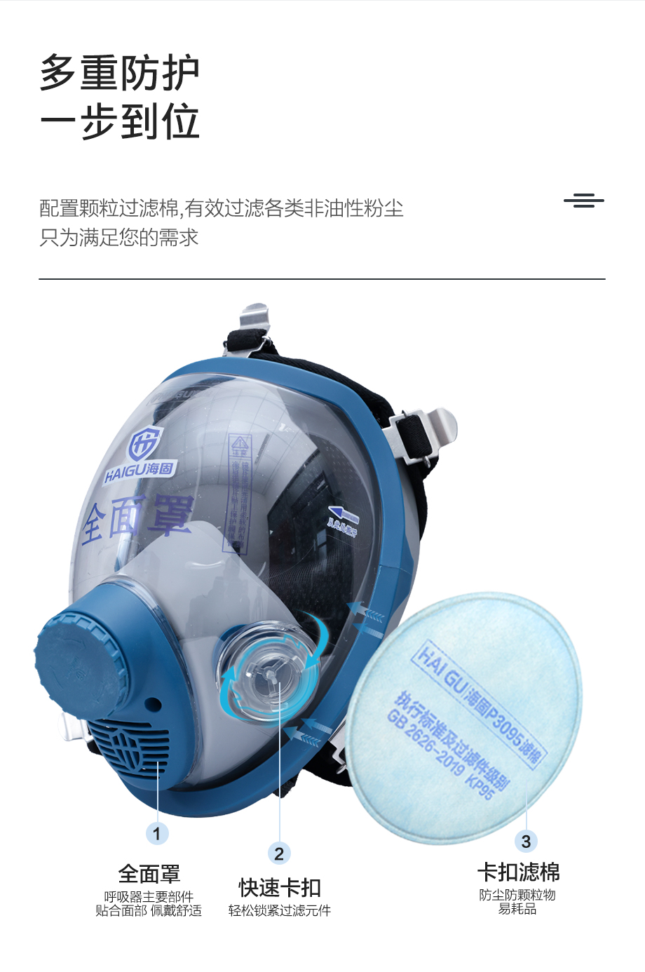 海固800D全面罩+KP100/KP95/KP90油性及非油性顆粒物濾棉 防塵套裝