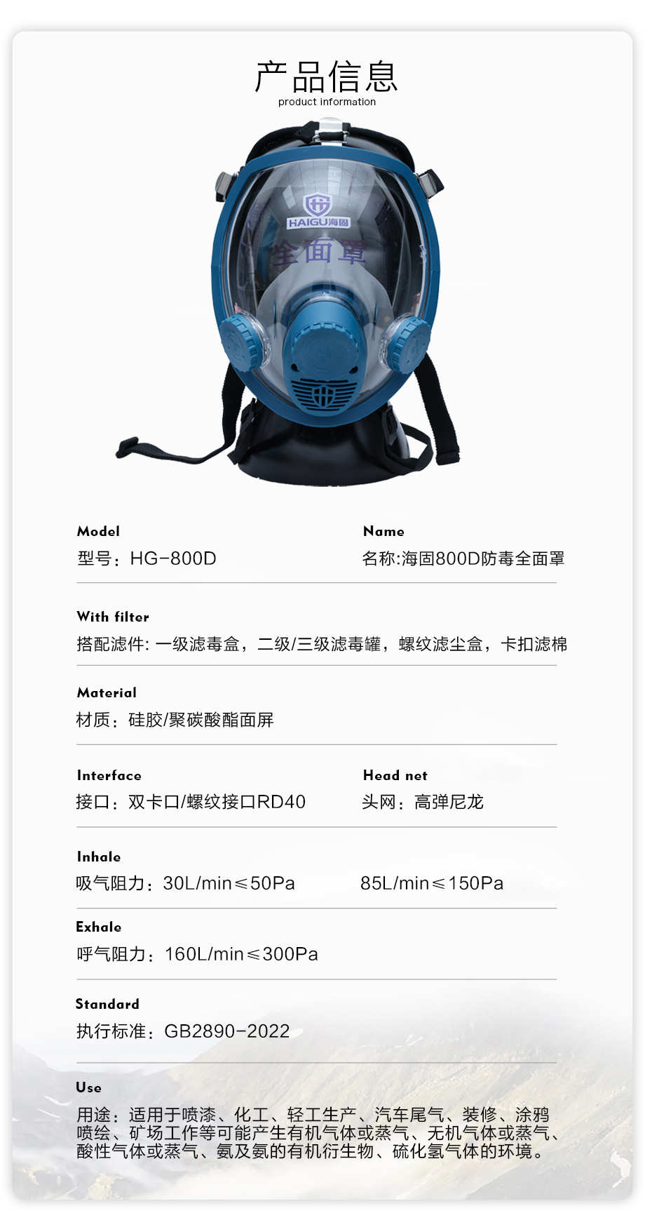 - 800D全面罩防毒面具套裝