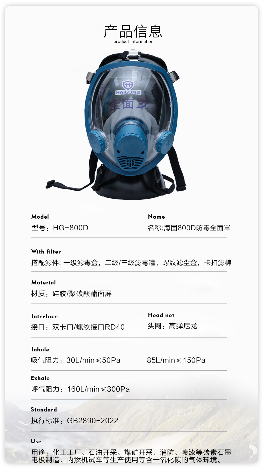 800D全面罩防毒面具
