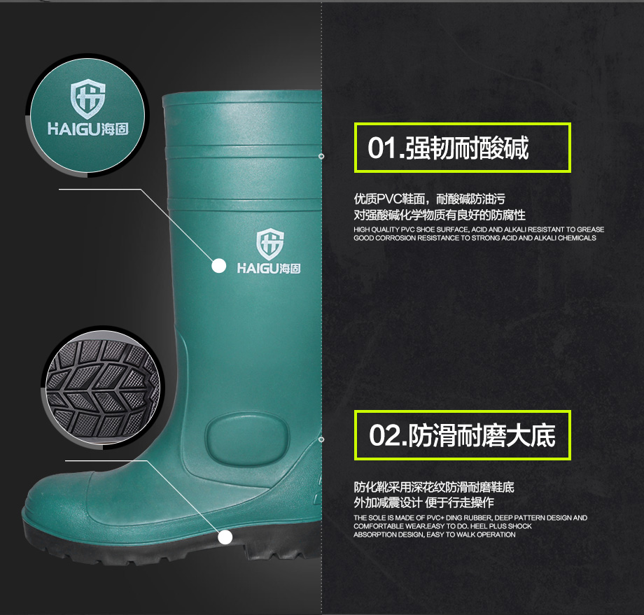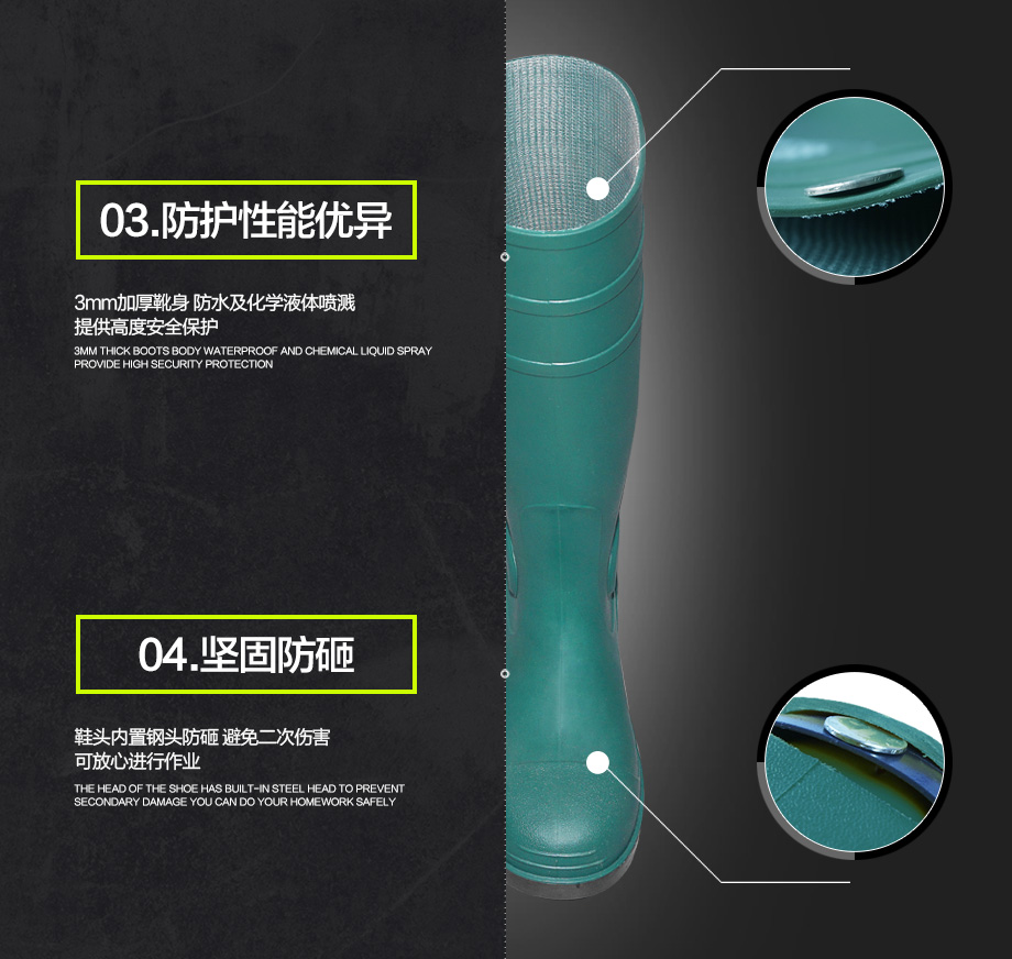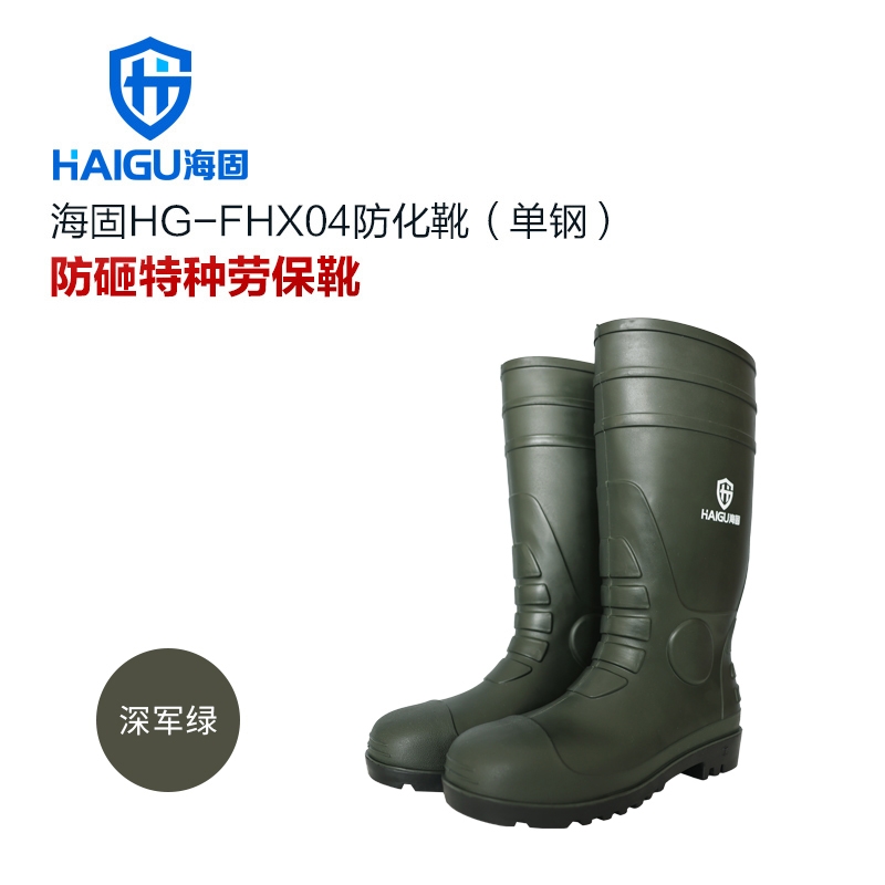 名稱:一級靴子-單鋼綠幫黑底防化靴