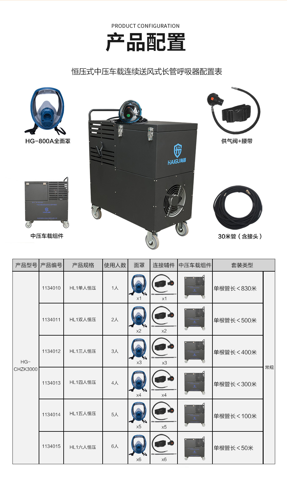 海固HG-CHZK3000恒壓式中壓車載連續(xù)送風(fēng)式長(zhǎng)管呼吸器