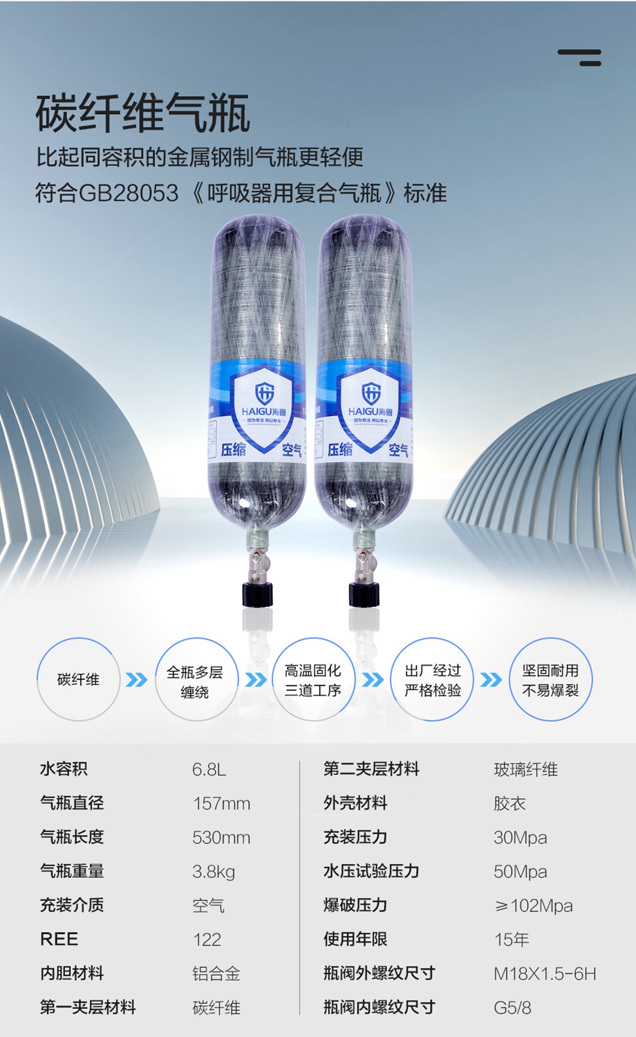 海固RHZKF6.8/30 正壓式空氣呼吸器 抬頭顯示+快充功能 碳纖維復(fù)合氣瓶