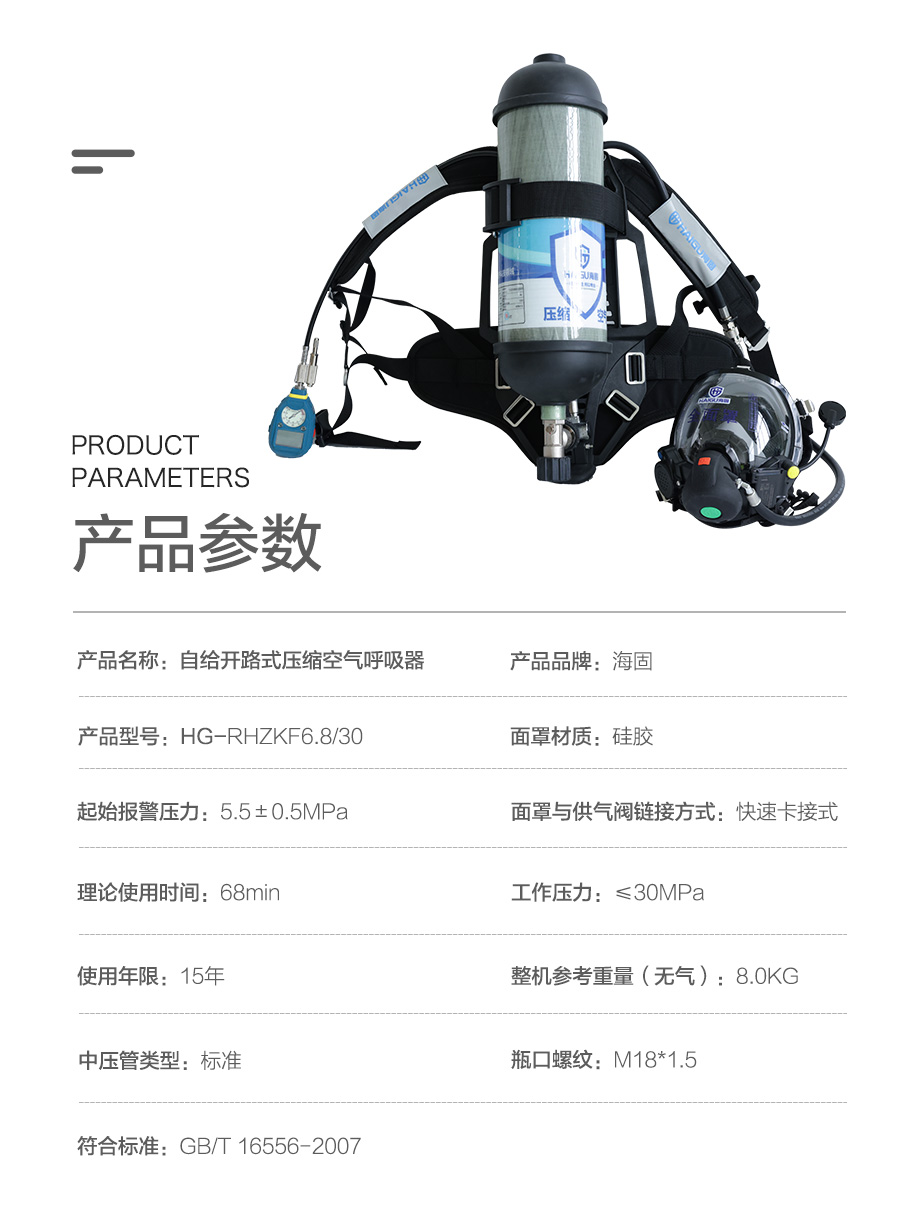 海固RHZKF6.8/30 正壓式空氣呼吸器 (智能壓力表+壓力平視裝置)