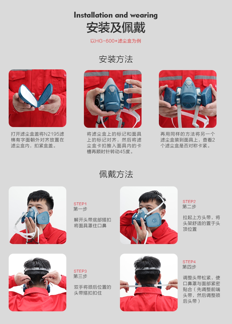 海固半面罩/全面罩搭配濾塵盒濾棉 防塵防顆粒物呼吸套裝